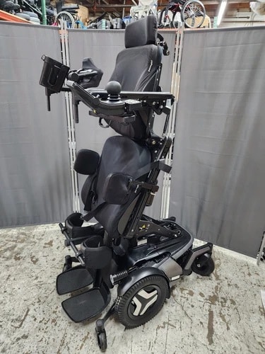 PERMOBIL F5 VERTICAL STANDER WHEELCHAIR 7.5MPH WITH POWER 14” SEAT LIFT, POWER TILT(BACKWARD),POWER TILT FORWARD(30 DEGREES MAX) POWER RECLINE , AND POWER LEGRESTS; LEGREST LIFT AND TILT